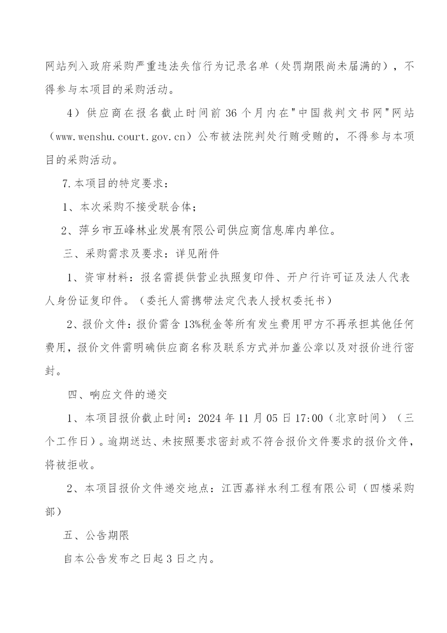 萍鄉(xiāng)市五峰林業(yè)發(fā)展有限公司2025年度供應(yīng)商招募啟事